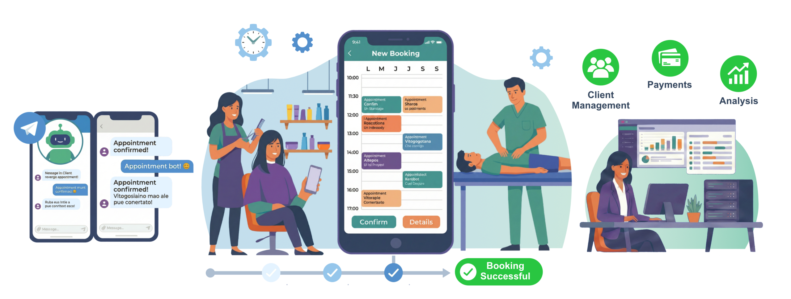 Clients chat with your bot to check availability and book appointments. The AI responds naturally, handles FAQs, and confirms bookings instantly.